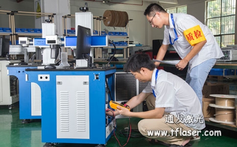 最后要注意的是,要想光纖激光打標機經(jīng)久耐用,最好選擇質(zhì)量可靠的老牌子,深圳通發(fā)激光12年專注激光打標機制造,國家高新技術(shù)企業(yè),業(yè)界口碑好,值得信賴!(下圖為TFL-F20CY光纖激光打標機質(zhì)檢中)