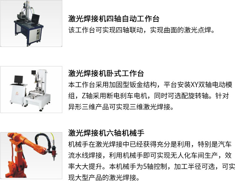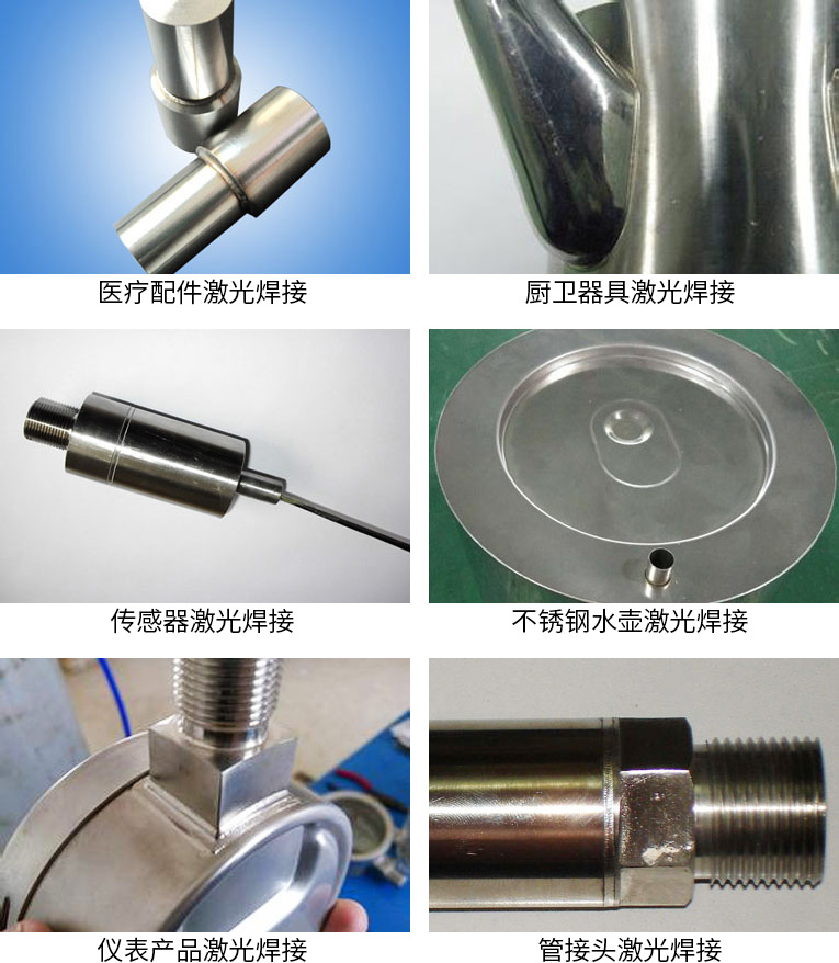 現廣泛應用的領域有手機外殼、筆記本電腦外殼、五金構件、廚具衛浴、軍工制造、電池外殼、動力電池、儀器儀表、馬達、IT手機構件、硅鋼片、汽車配件、激光熔覆、醫療器械等精密零件焊接。