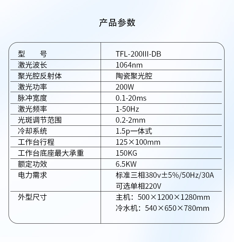 TFL-200Ⅲ-DB型模具激光焊機是通發激光公司在TFL-180Ⅲ的基礎進行了改良,采用通發自主研發的二代精密單燈電源為燈泵浦驅動電源,操作更方便。主機具備激光頭手搖升降與工作臺按鈕電動升降實現焊接不同厚度模具的激光焊加工。本款機型更適用于各類高精密注塑模具激光補焊,精密塑膠模具零件激光修補,塑膠模具鈹銅零件激光燒焊;可對模具使用過程中出現的磨損進行激光修復;對機械加工失誤、電火花加工失誤,模具減膠設計變更等需要對模具修改,起到關鍵的作用,可彌補應加工失誤造成的巨大損失。